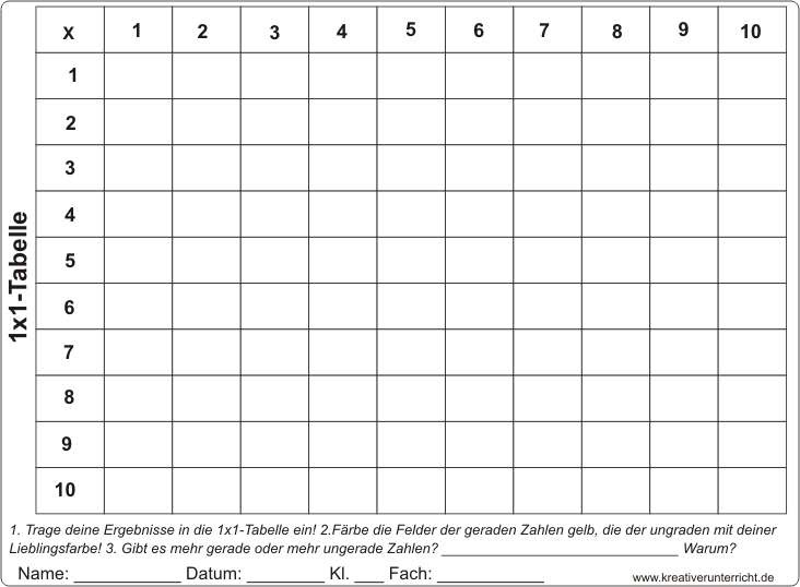Großes Einmaleins Leere Tabelle Zum Ausdrucken - 1x1 Tabelle - Familienstammbaum leer zum ausdrucken :